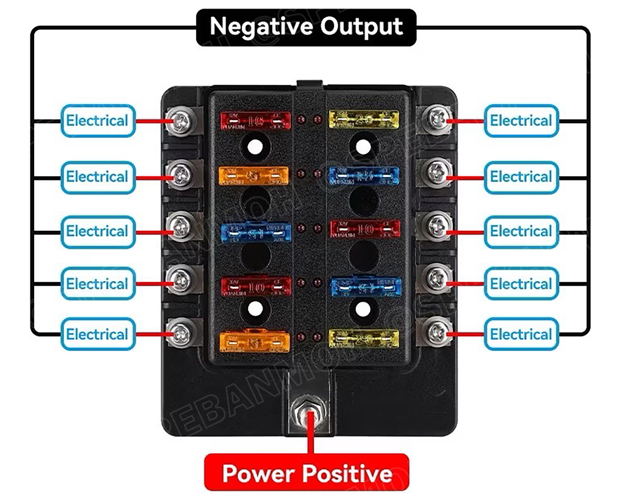 FB-1902 12 Ways Fuse Block with Negative Bus | | | |