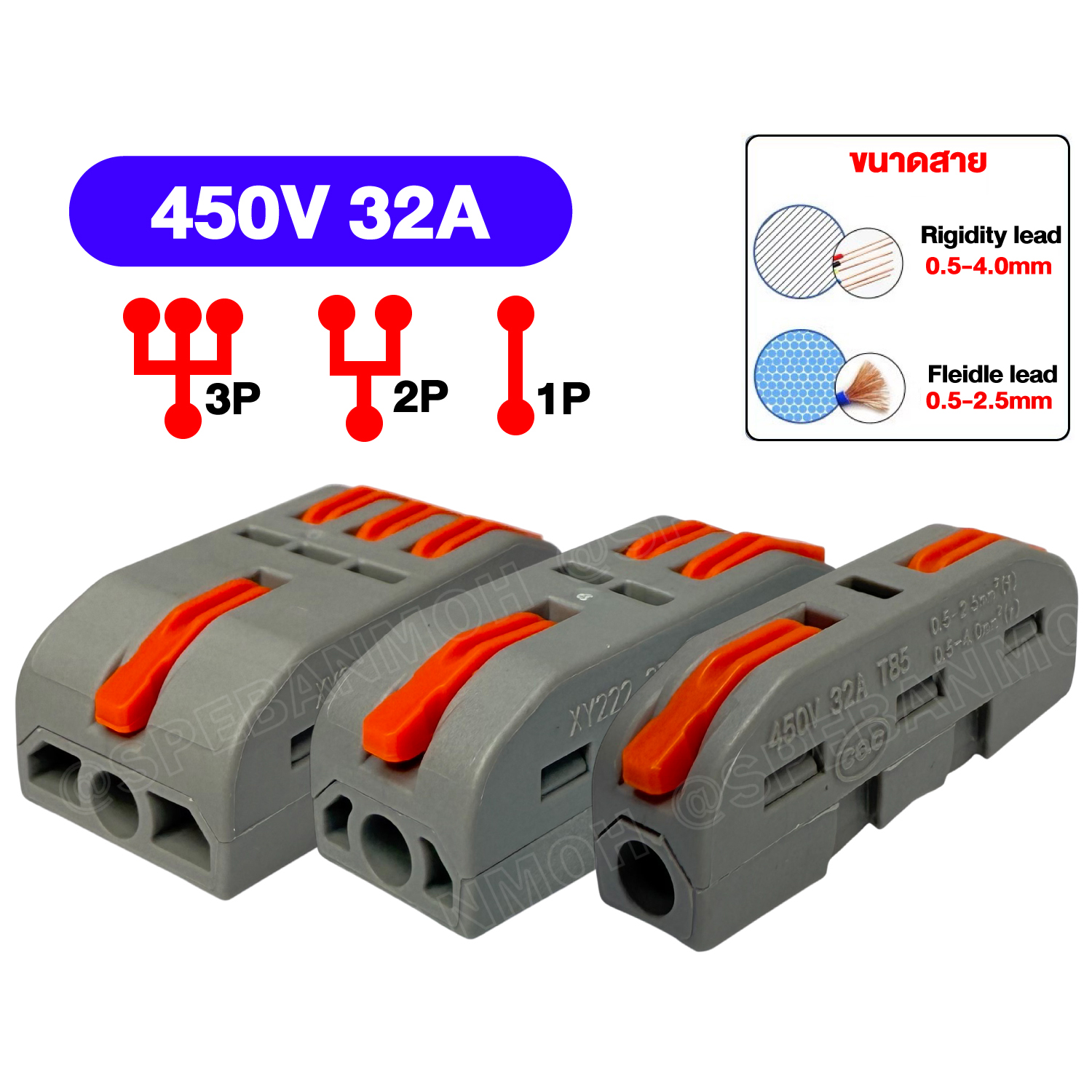 | PART NUMBER | PRODUCT DESCRIPTION | Rating | UNIT PRICE(THB) | LT-422 | ตัวแยกสาย 2 ช่อง 2ชุด | | Flexible lead | : 0.5-4(mm²) | | | : 20-12AWG | | Rigidity lead | : 0.5-4(mm²) | | : 20-12AWG | | Current | : 32A | | Voltage | : 450V |